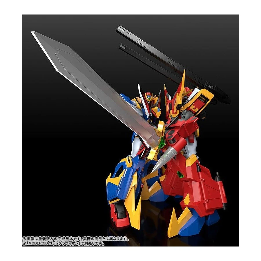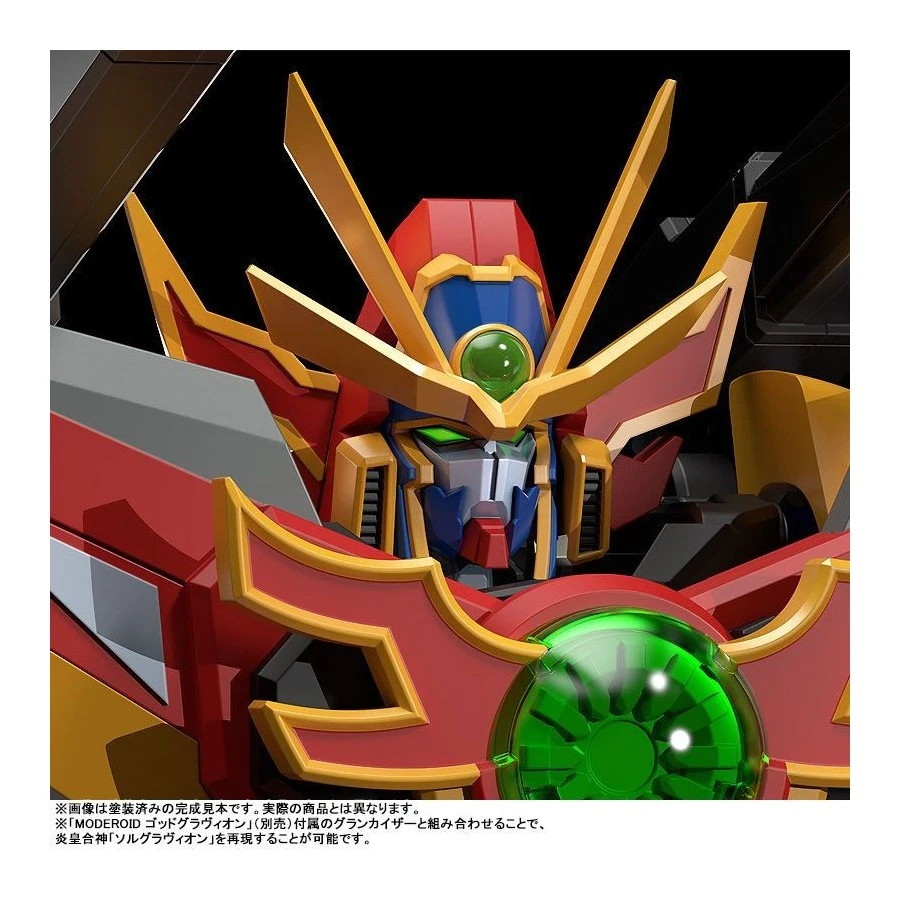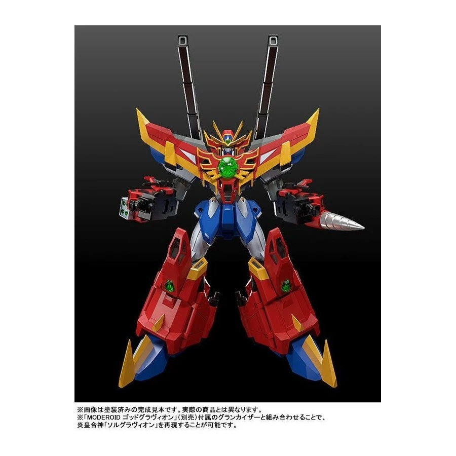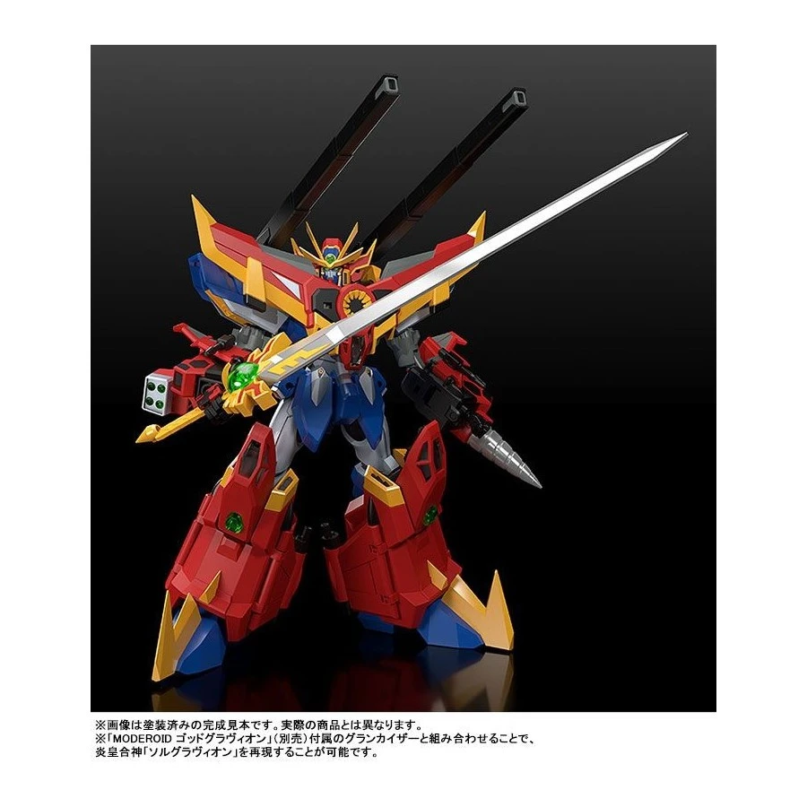 Viene fornito con un corpo non trasformabile e combinato del Sol Sigma Gravion per facilitarne l’esposizione, i 4 Sol Grandivas possono essere combinati ed esposti nella forma G Gladius con una speciale base stand, Super Heavy Sword, mani intercambiabili e parti per combinarlo con il Gran Kaiser forntio con il MODEROID God Gravion (VENDUTO SEPARATAMENTE) per ricreare il Flame Emperor Sol Gravion.